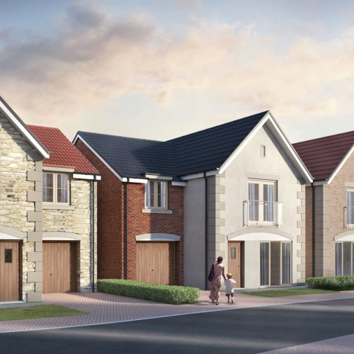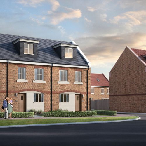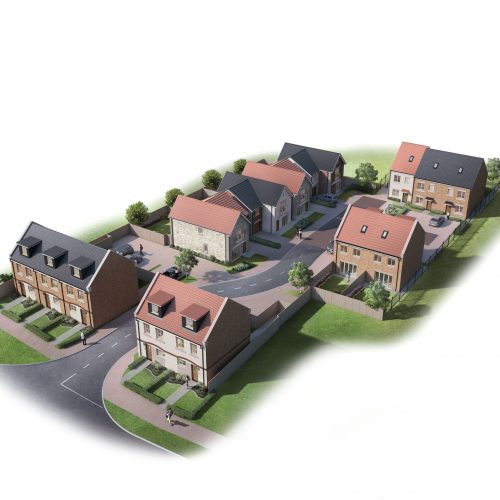 A small infill development site of 14 new homes consisting 3 and 4 bedroom detached, semi-detached and terraced properties. Formerly a Petrol Filling Station, the proposal was well received by the local authority, and with the use of high quality external materials and elevational treatments the development will become a great addition to the village.